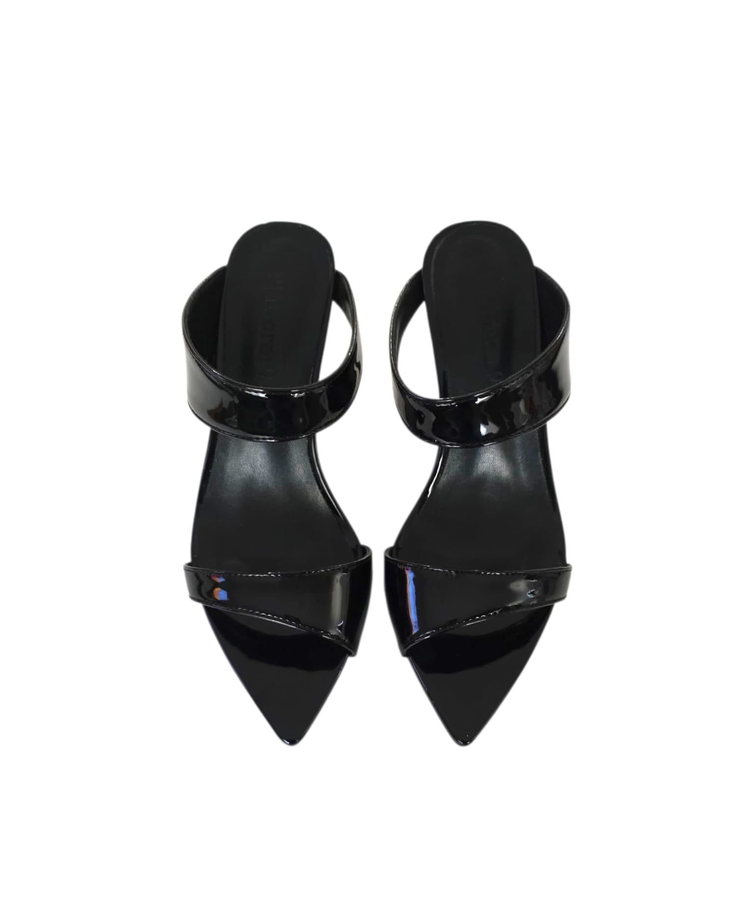 - Black non-leather patent upper